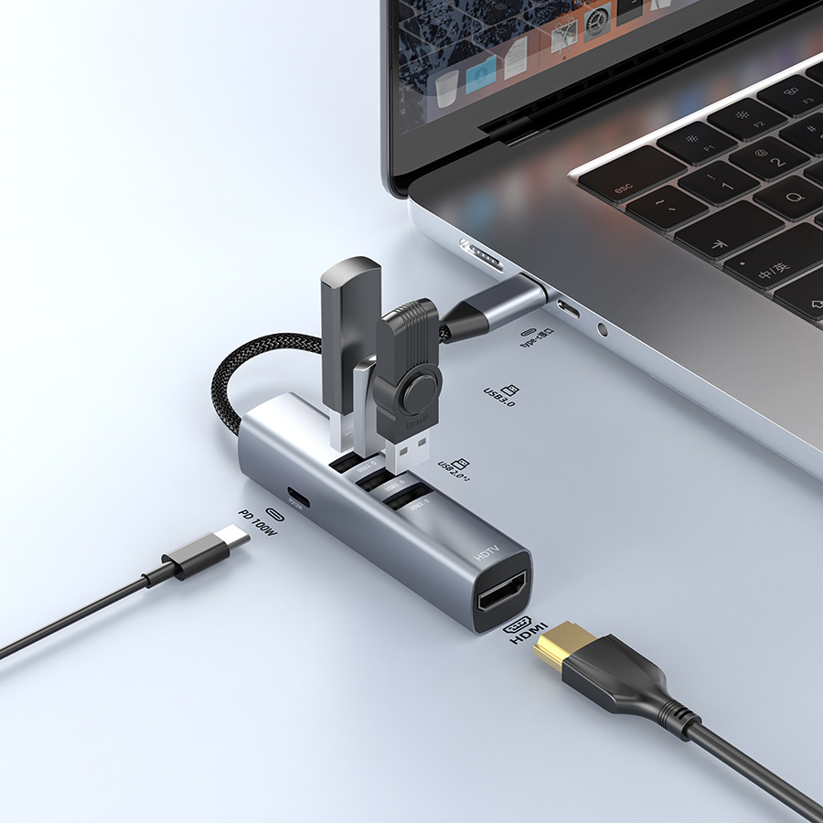 - واجهة: USB-C Male to HDMI+USB-A 3.0+USB-A 2.0*2+USB-C