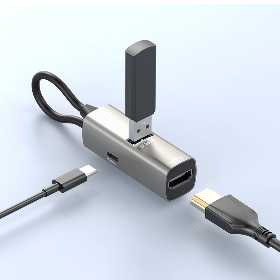 - Interface: USB-C Male to HDMI+USB-C++USB-A 3.0