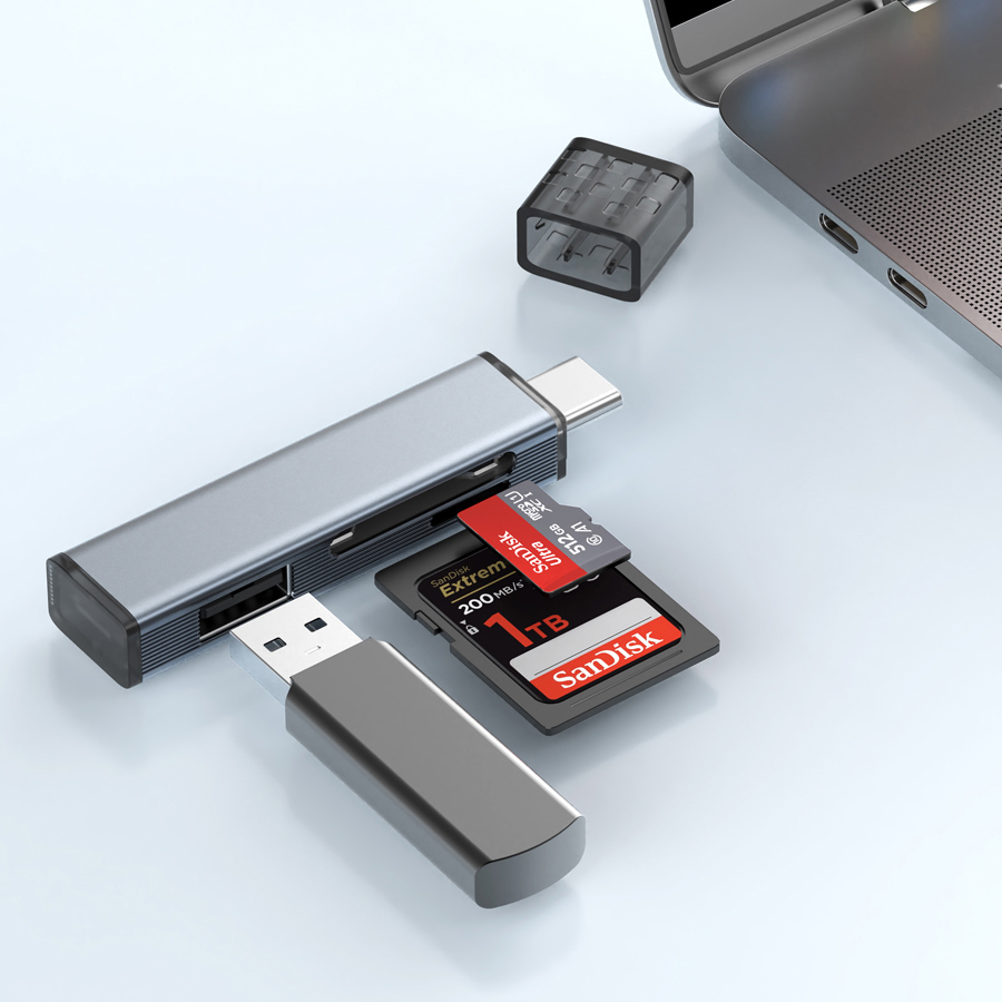 - 3-in-1 Card Reader: The USB-C SD Card Reader features dual card slots and a USB 2.0port.